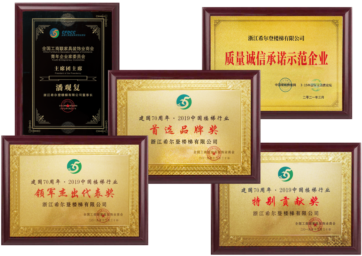 在不斷提升希爾登品牌和企業(yè)實(shí)力的同時(shí),希爾登一直熱心參與樓梯行業(yè)的健康發(fā)展;參與創(chuàng)立全國工商聯(lián)樓梯專委會(huì)并被推選為中國樓梯品牌聯(lián)盟執(zhí)行主席和樓梯專委會(huì)執(zhí)行會(huì)長(zhǎng);憑借在行業(yè)內(nèi)的專業(yè)地位,希爾登參與了《木質(zhì)樓梯》,《木質(zhì)樓梯安裝驗(yàn)收和使用規(guī)范》,《住宅內(nèi)用樓梯》,《建筑用玻璃與金屬護(hù)欄》四個(gè)國家和行業(yè)標(biāo)準(zhǔn)的起草工作。先后榮獲“中國樓梯十大品牌”、“金木樓梯領(lǐng)軍品牌”、“中國泛家居發(fā)展中企業(yè)500強(qiáng)”、“中國家裝行業(yè)金鉆獎(jiǎng)”、“金屬木質(zhì)樓梯一級(jí)資質(zhì)”等二十多個(gè)榮譽(yù)和稱號(hào)。我們幾乎參與和見證中國樓梯發(fā)展歷程中的所有重大事件。希爾登過去,現(xiàn)在和未來都是中國樓梯的標(biāo)桿企業(yè)。